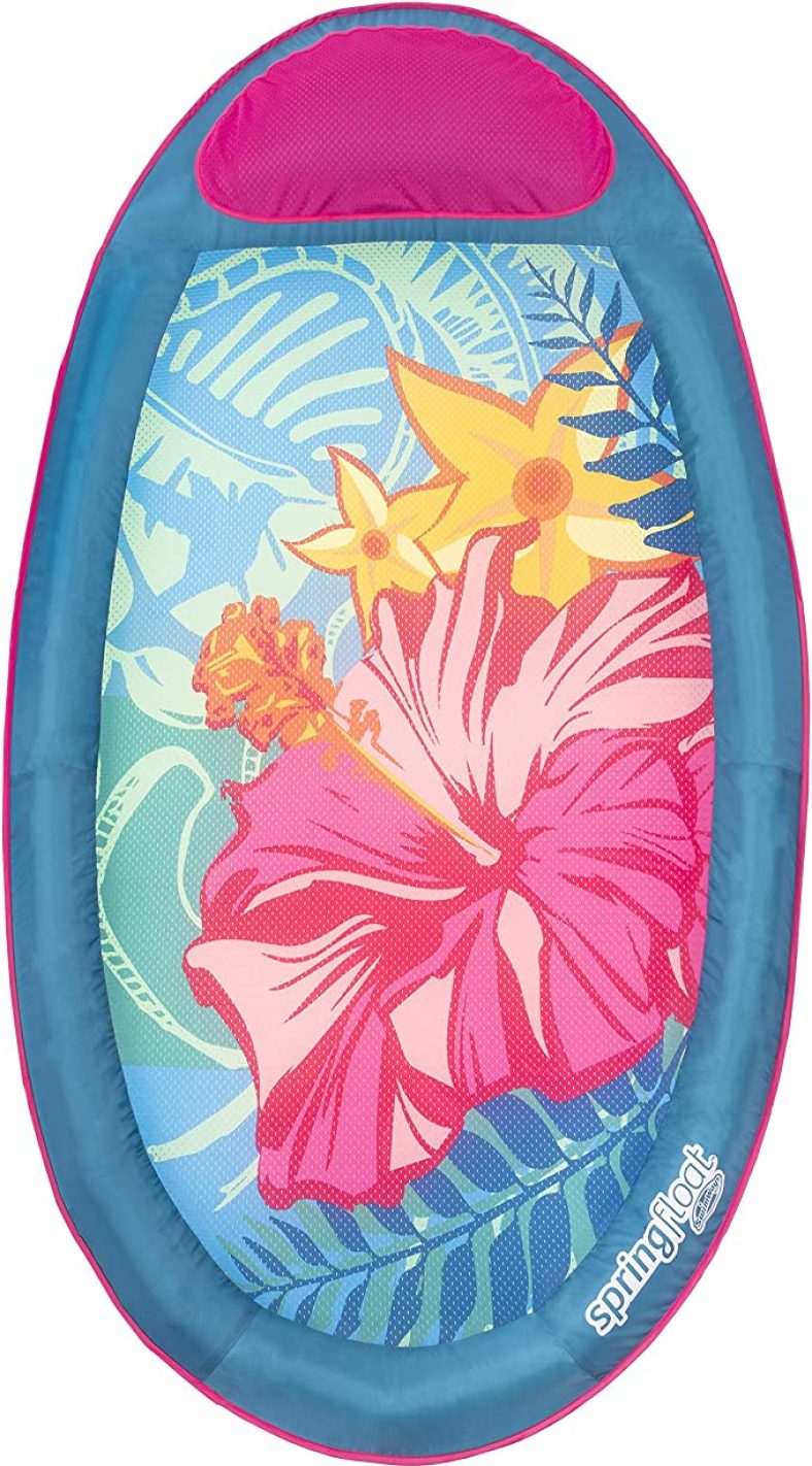 The SwimWays Spring Float Graphic Prints is a pool float with a patented inner spring around the outside edge for greater comfort and stability in the water. Relax in the soft, cooling mesh bed that suspends your body just below the surface of the water, helping to keep you cool on hot summer days
